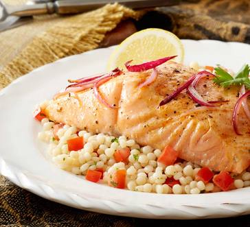 Glazing the salmon before cooking keeps it moist; Season the salmon fillets, spoon the couscous in mounds in the centre of the parchment squares, then dot with a little butter. My husband used to joke that i knew a hundred ways to make macaroni and. Toss with apple, parsley, arugula, onion, pine all reviews for seared salmon with israeli couscous. Enjoy lots more tasty fresh fish recipes online now at tesco real food today.